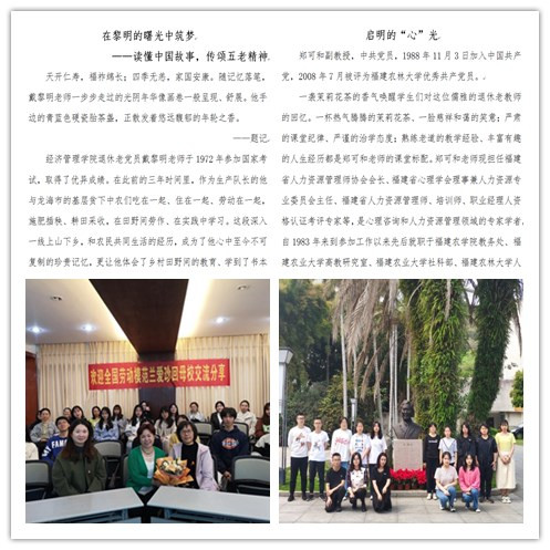 听老同志讲故事,赓续红色血脉。院关工委充分发挥党内老同志模范引领作用,邀请戴黎明、郑可和等退休党员,为青年学子讲述入党初心、家国发展及个人党员生涯的真实事迹与感悟;开展“明党史,守初心,增使命”党史专题教育讲座,邀请“全国劳动模范”兰爱珍等优秀校友面向师生讲述改革开放洪流中的奋斗历程;群策群力,动员师生寻访农林大“光荣在党50年”老党员,深入挖掘楷模榜样,用活红色资源。