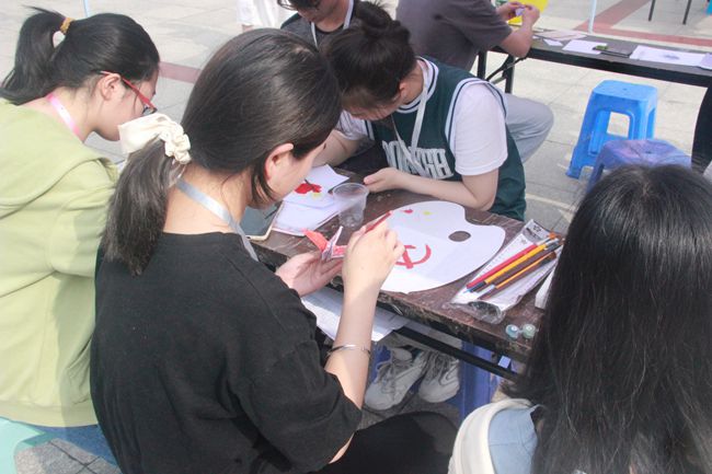 本次系列活动由三个部分组成。在第一部分“读万卷书,颂中国梦”活动中,同学们通过党史知识竞答、旧书售卖、制作读书卡三种不同形式,感受阅读魅力,激发党史学习的热情和动力。第二部分“行长征路,悟红军苦”活动,以“巧渡金沙江”“翻越五岭”“勇夺泸定桥”三个党史故事原型为主题。设立历史体验类游戏。第三部分“书生‘艺’气,挥斥方遒”活动,则以书画展、DIY体验区、书法体验区为主要内容,让同学们既能欣赏佳作,又可动手体验,为同学们带去良好的参与感。
