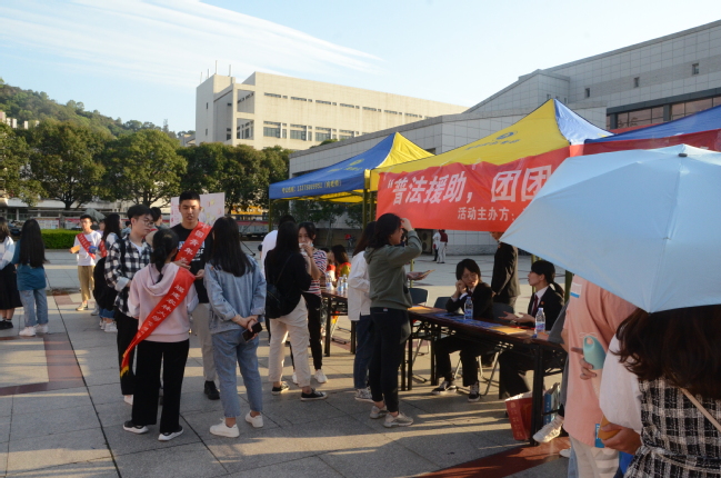 4月29日下午,公共管理学院联合鼓楼区人民法院团委于拓荒广场共同开展“普法援助,团团合作”普法宣传活动。