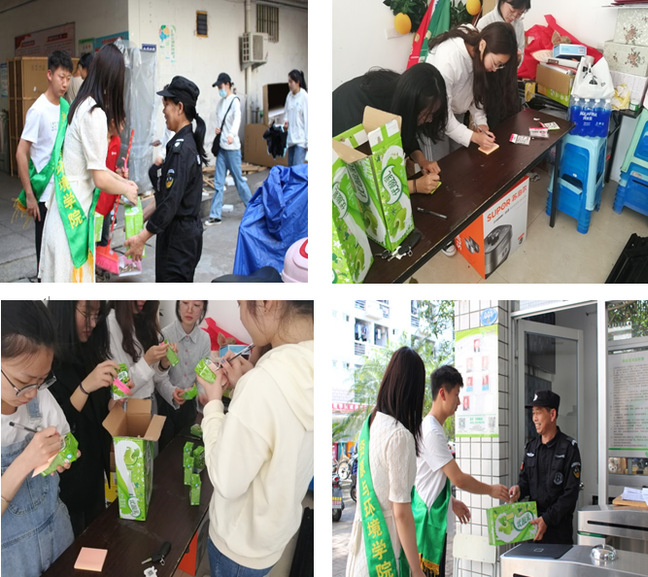 关爱基层劳动者志愿服务活动。4月28日下午,学院组织学生党员志愿者、团学干部前往宿舍保安室、学生后勤服务点开展“关爱基层劳动者”志愿服务活动,向学校一线的环卫工人、物业保洁员和保安送去牛奶和“五一”节日祝福,并向他们表示感谢,感谢他们的辛苦付出。活动的开展,不仅培养同学们感恩情怀,还积极营造了尊敬劳动者、弘扬社会正气的浓厚氛围。