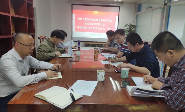 4月29日,材料工程学院党委理论学习中心组召开党史学习教育读书班第三专题(中国特色社会主义为什么“好”)学习研讨会。党委理论中心组成员出席会议,会议由学院党委书记林豪森主持。