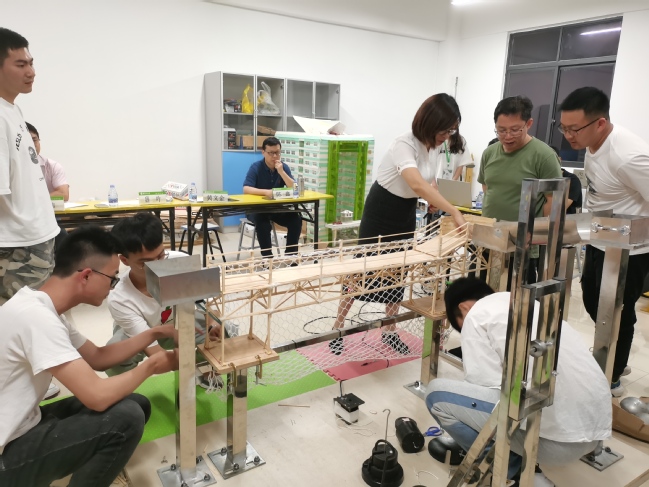 共有6支队伍进入决赛,各参赛选手在指导老师指导下,使用赛会统一发放的木条、竹皮等材料制作模型,通过不断尝试加载,改进创作出了山区道路支护结构的设计模型。经过现场加载试验后,由评委老师最终评选出获奖队伍,其中一等奖获得者为:SMG战队(2019级土木工程专业刘亮、杨志雄、欧传发)和战队UP TO YOU(2019级土木工程专业陈约翰、黄榆景、丰光阳)。这两支队伍也将代表我校参加福建省第十三届大学生结构设计竞赛。
