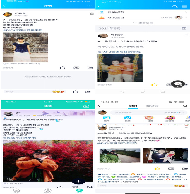 5月9日是母亲节,在节日即将来临之际,资源与环境学院组织开展“一张照片,诉说与妈妈的故事”主题照片故事征集活动。