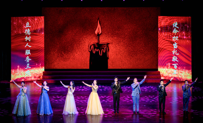 此次晚会分为“守正笃实·践行使命守初心”“久久为功·服务三农育新人”“行稳致远·礼敬百年建新功”三个篇章。晚会在充满激情与活力的开场舞《大地的节拍》中拉开序幕,合唱《我宣誓》庄严而富有气势地唱出了入党誓言,表达了中国共产党人对初心的坚守及对党和国家的深沉热爱;京剧《中国脊梁》通过歌曲向时代英雄致敬;手势语歌曲《国家》用手势传递了对国家的真挚热爱;情景舞蹈《我们的故事》描绘了在学校和学院的发展历程中,农学人跟随中国共产党,融入时代发展、社会建设的足迹;老师们的小组唱《教师之歌》唱出了农学院教师立德树人的铮铮誓言,呈现了服务三农育新人的信心和决心;情景诗朗诵《风吹雨打不回头,此生原是拓荒牛——纪念周可涌先生》展现了周可涌先生深厚的知识底蕴、严谨的治学态度、高尚的道德品质,以身作则影响学生、感染学生、教育学生;舞蹈《耕耘》用优美的舞蹈描绘了农学人的坚持、执着和热爱;话剧《追梦新农人》呈现了农学院师生勇担责任,服务基层、奉献社会,投身实现伟大中国梦的历史洪流;武术《武动青春》在一张一弛之间展示中华武术的精魄;歌曲串烧《流金岁月·奋斗不止》唱出了不同时代农学人奋斗不止的可贵精神;最后,师生合唱团演唱的《我们走在大路上》,激昂的歌声感染了全场观众,集体起立高亢齐唱把晚会推向高潮。