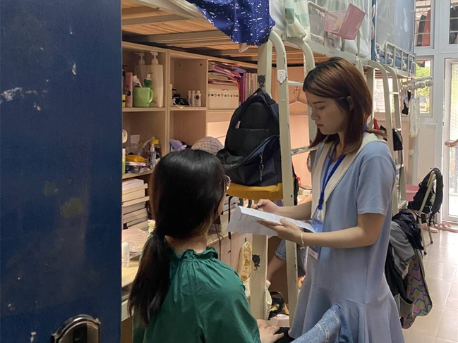 在走访过程中,工作人员还对宿舍文明卫生情况做了督导,详细了解同学们在宿舍生活中存在的问题,提醒宿舍做好卫生清洁,垃圾及时下楼,以免滋生蚊虫,传播疾病,督促同学们及时清理堆放在走廊的垃圾杂物,确保消防通道畅通,此外,针对同学点外卖的情况,工作人员还提醒同学们在季节交替时节要特别注意饮食卫生,对同学们点外卖的行为进行劝导,鼓励同学们到餐厅用餐,养成健康良好的饮食习惯。此外工作人员还结合校园案例,就防火、防盗、防诈骗等安全问题进行温馨提示,提醒学生要时刻注意自己的人身财产安全,切实提高安全防范意识。
