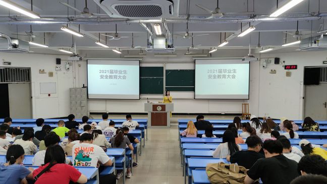 5月15日晚,林学院组织2021届毕业生于田家炳212召开安全教育大会。2021届学生参加会议,毕业班辅导员雷美玲主持。