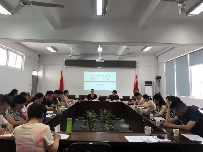 5月20日,国际学院在明北附305召开班主任工作会议,院党委书记张华英、院长吴锦程及其他党政班子成员、全体班主任及政工干部参加会议。