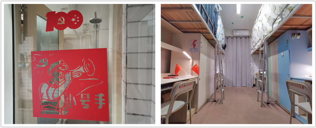 本次宿舍文化节共分为宿舍装饰大赛、海报大赛和舍标大赛三个部分,三个比赛融入了同学们对中国共产党建立100周年的祝福,体现了当代大学生的动手能力,交际能力和创新能力。各个宿舍尽显风采,展示不同风情的宿舍装扮、各有特色的宿舍标志,同学们的奇思妙想让大家耳目一新。
