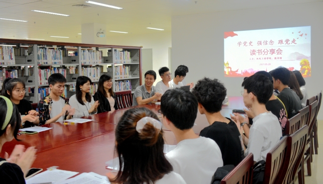 5月20日,机电工程学院在旗山校区图书馆二楼举办“学党史 强信念 跟党走”党史学习读书分享会,此次分享会由机电工程学院和图书馆联合举办,图书馆为分享会提供了阅读书籍。会议由学院王荣华老师主持,图书馆李冬梅、傅建秀老师及读书会全体成员参加分享会。