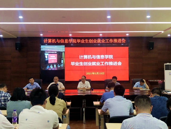 5月19日,计算机与信息学院在宝玲楼103会议室召开2021届毕业生就业创业工作推进会。学院党政领导班子、党支部书记、系主任、辅导员、班主任等参加了会议。会议由学院党委书记钟一文主持。