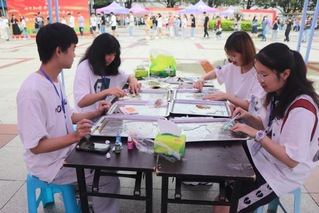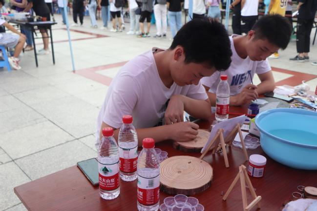 在本次活动中,由参赛选手根据之前选好的图案现场在杉木圆盘上绘画,在所有选手完成作品后,由现场的同学进行不记名投票。同时,之前征集到的同学们的各种创意叶脉书签也在本次活动中亮相。现场还有许多游戏供同学们参加,如现场制作叶脉书签并为之染色、选择喜欢的硬卡纸在上面填涂干花等游园活动。活动结束后,19级水土保持专业蔡欣彤同学表示:“每一次举办活动都是不一样的体验,都是值得纪念的曾经,我总能从中学习到新的能力,感受到新的美好,虽然很累,但也很开心。”