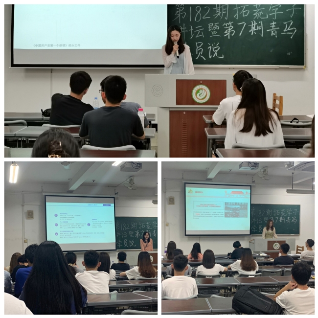 来自我校兄弟学院的优秀学生团员孔昕、陈倩倩、郭烨担任主讲,他们结合学习党史体会以及参加学术竞赛、出国留学、自主创业、考研经历等,从不同角度与在场学生进行分享交流。