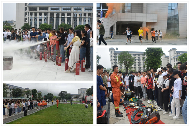 活动现场,上街消防站教官重点讲解了学生宿舍楼、教学办公场所、科研实验室等场所的火灾危害性和防火措施、消防灭火及疏散逃生等知识。校区保卫办工作人员组织师生在旗山校区图书馆现场开展了应急疏散演练。参演师生听从指挥,反应迅速,安全有序地撤离到东门广场集合。