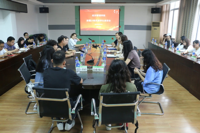 5月24日下午,经济管理学院在经管楼509召开新疆少数民族学生座谈会。学院党委副书记李健英、副院长坚瑞、新疆内派老师陈国礼、王斐、巴给娜、全体辅导员和全院20位新疆少数民族学生参加座谈会,会议由李健英主持。
