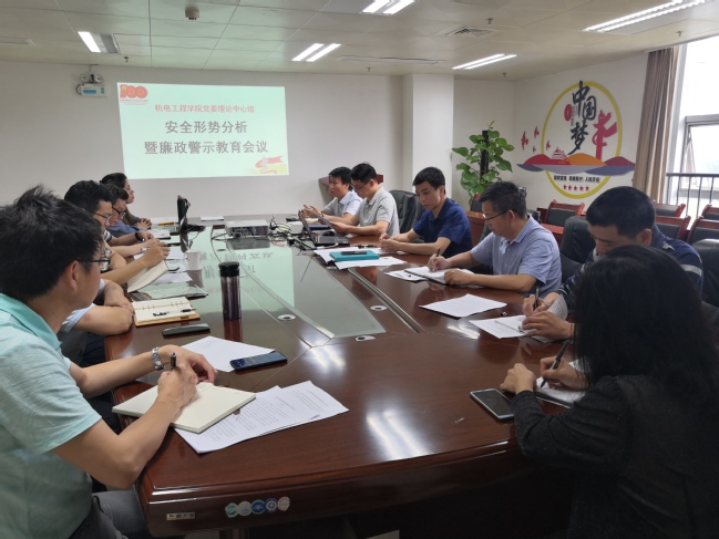 5月25日上午,机电工程学院党委召开安全形势分析暨廉政警示教育会议,学院党委委员、实验教学中心负责人、政工干部10余人参加了会议,会议由学院党委书记池有忠主持。