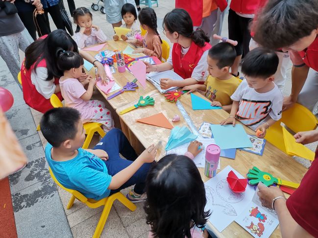此次活动主要围绕红色文化主题展开。活动中,志愿者通过带领小朋友们制作折纸、学习红色文化故事、完成功勋人物绘图等,帮助小朋友进一步认识共和国历史上的功勋人物,增进他们对百年党史中悠久红色文化的认知。活动过程中还设置了游戏环节,不断激发小朋友们的兴趣,鼓励小朋友们积极参与到各项活动中,现场活动氛围浓厚。活动结束后,志愿者们以身作则,做好活动现场的垃圾分类回收,呼吁小朋友们“保护环境,从我做起”,提升青少年的环保意识。