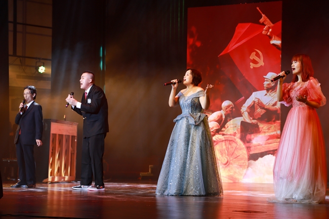 晚会在歌舞大合唱《保卫黄河》中拉开了序幕。第一篇章“火种·地火炼熔岩”中,师生共同演绎的《国际歌》以其昂扬的战斗激情,展现了先辈们博大的革命胸怀;古典舞《半个世纪的等待》讲述了南京雨花台烈士许包野奔赴革命,妻子叶雁萍守住希望的火种,从青丝女子变成白发老人的动人故事;音诗画《此间曾著星星火》生动再现了五四运动时期青年人的豪情壮志、热血澎湃,激励着新时代的青年不忘百年来时路,革命薪火代代传。第二篇章“蜕变·烈焰锻真金”中,校园话剧《到基层中去》以“e修哥”为创作原型,讲述了当代青年怀抱赤子之心,奔赴八闽大地,带领家乡人民参与脱贫攻坚和乡村振兴的故事;萨玛舞《马兰花开》讴歌了艰苦奋斗、开拓创新、大力协同、无私奉献的马兰精神,一个富强文明的祖国凝聚着五十六个民族的无限希望;原创歌曲《彼此守护前行》讲述了面对疫情,14亿人民守望相助,彼此守护前行的故事;舞台报告剧《向阳之处必有声》带领观众们走进开云网页版绿伞志愿服务队,聆听向阳之处的阵阵回响,传递了奉献、友爱、互助、进步的志愿服务精神。第三篇章“辉映·燎原红满天”中,现代舞《启航看中国》将青春梦与中国梦交相辉映,展现了新时代的青年的朝气蓬勃;军旅舞蹈《钢铁洪流》用艺术演绎了战士们跋山涉水、翻山越岭的行军作战画面,舞蹈扎根军营、讴歌英雄,跳动在祖国奋进的节奏中;情景表演唱《祖国不会忘记》通过院国旗护卫队铿锵有力的步伐和高亢嘹亮的歌声,向所有把青春和热血融进祖国壮美的山河的国之脊梁们致以最崇高的敬意,祖国和人民永远不会忘记。