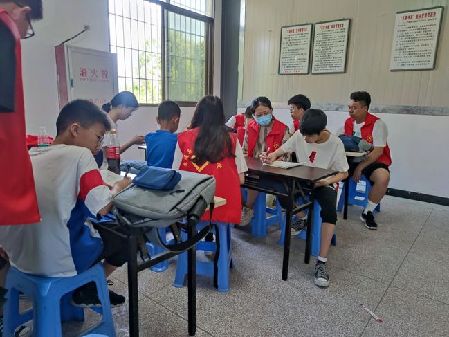 志愿者为小朋友辅导作业