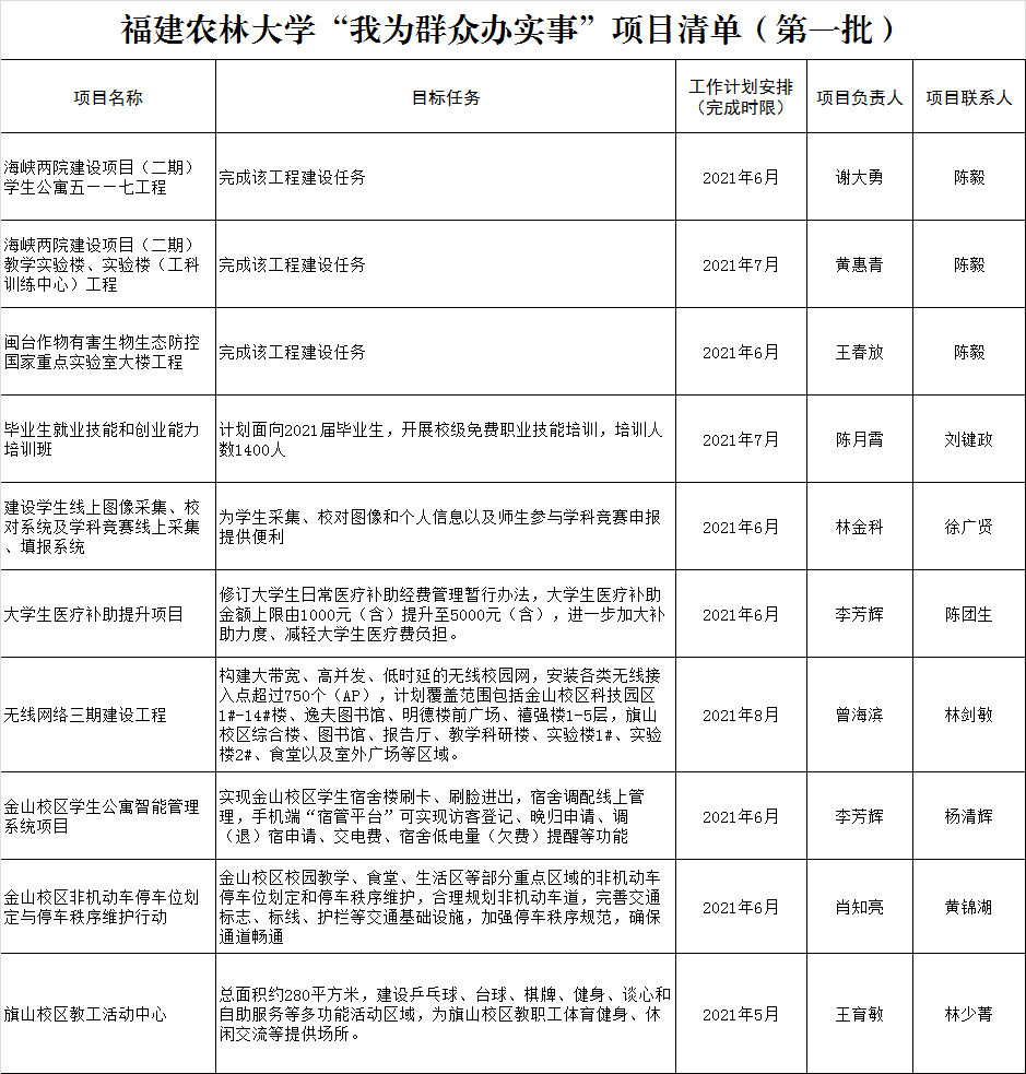 根据校党史学习教育工作安排,现将我校“我为群众办实事”(第一批)项目清单进行公示。