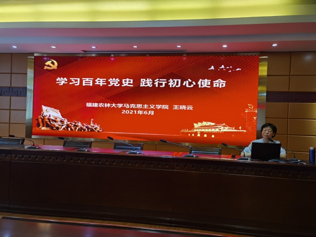 6月3日下午,我校马克思主义学院王晓云教授以“学习百年党史 践行初心使命”为题,在继续教育学院三楼学术报告厅为继续教育学院全体教职工讲授了一堂史实丰富、生动的党史学习教育课。