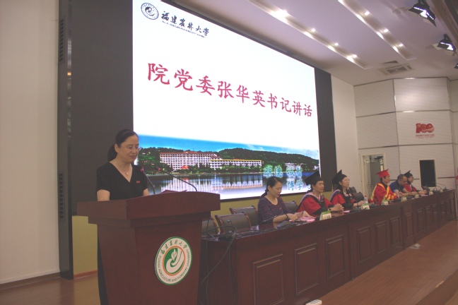 学院党委书记张华英作讲话,对同学们顺利毕业表示祝贺,并对毕业生提出要坚定信念,追求卓越;要从实从细,久久为功;要以梦为马,不负韶华等要求。