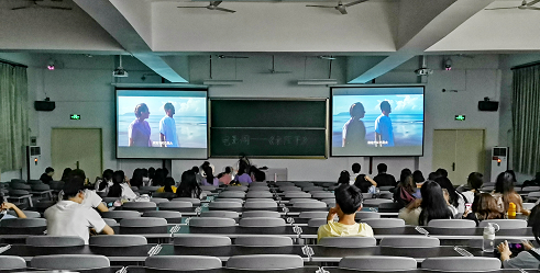 6月4日晚,安溪茶学院在校区教学楼开展本学期第九场“电影周”活动,100名学子共同观看了爱国主题教育电影《袁隆平》。