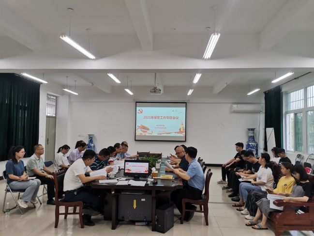 6月8日上午,林学院党委在诚A206召开2021年保密工作会议,学院党政领导班子、保密工作领导小组成员及各党支部书记参加,会议由学院党委书记蓝天水主持。