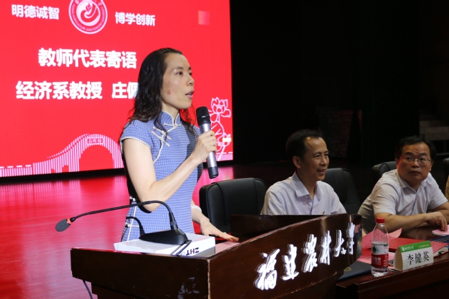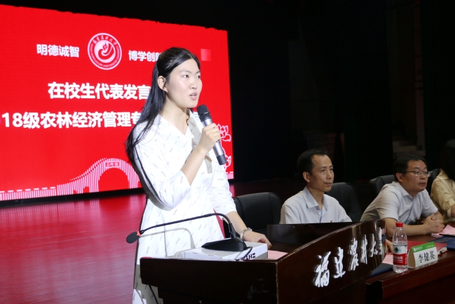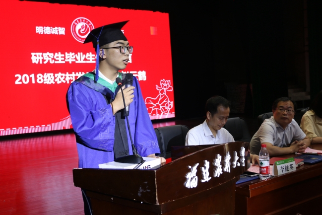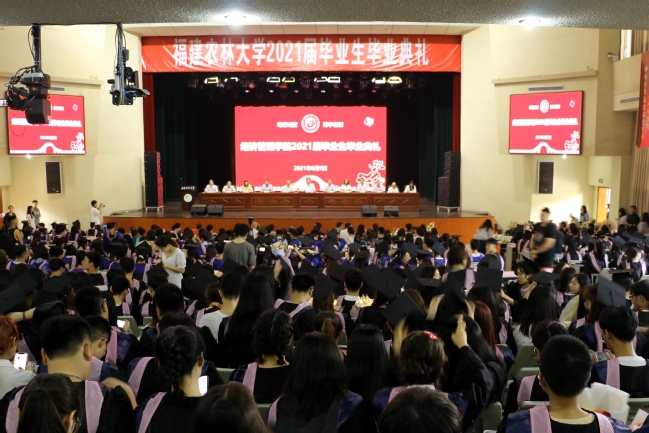 典礼上,石德金宣读2021届校优秀毕业生名单,毕业生代表2018级农村发展专业硕士研究生赵云鹤与2017级人力资源管理专业本科生吴祺郎发言,赵云鹤表示十分珍惜在校的七年时光,相信在学校的历史长卷里,必然有经管学子不忘初心、砥砺奋进的浓重一笔。吴祺郎认为这四年在学校收获了许多温暖,未来将带着农林大“明德、诚智、博学、创新”的精神走向漫漫征途。在校生代表2018级农林经济管理专业郭奕君与教师代表庄佩芬教授对2021届毕业生给予了毕业寄语,祝福大家前程似锦,在劈波斩浪中开辟新的天地!