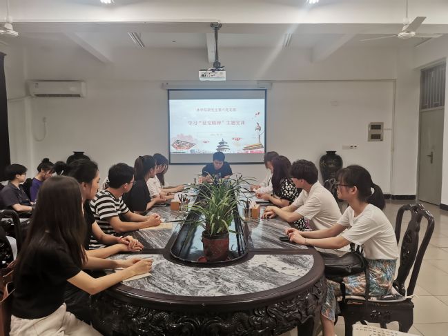 6月2日,林学院党委“红树林论坛”之“书记讲党史”第六讲在诚A220举办。学院研究生第六党支部书记王李睿走进讲坛,为所在党支部30余名党员和入党积极分子作题为“学习延安精神”的党史学习教育专题党课。