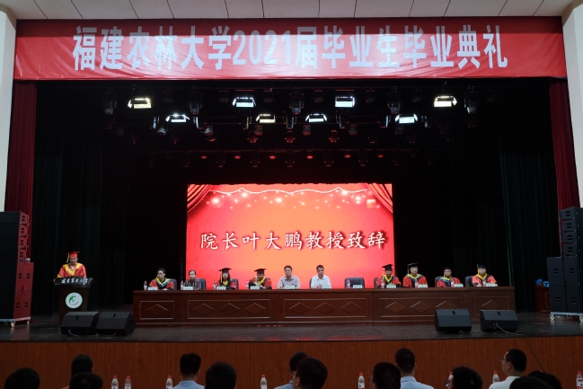 典礼在庄严肃穆的国歌声中拉开序幕。叶大鹏代表学院对2021届毕业生顺利完成学业表示衷心的祝贺,嘱托毕业生们在新时代、新征程中厚植爱国主义情怀,勇担时代重任,磨练坚毅品格,将个人发展与国家发展相融合,在民族复兴中实现自身价值。
