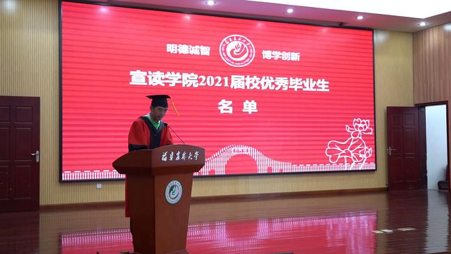 院党委书记肖红新宣读《关于表彰2021届“优秀毕业生”的决定》