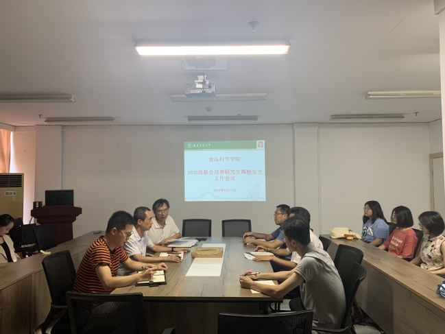 6月18日下午,食品科学学院在学院会议室召开2020级联合培养研究生离校座谈会。学院党委副书记余顺兴、副院长林河通、研究生教学秘书肖贵平、研究生工作助理陈艺晖、科级辅导员赵伟豪出席会议。