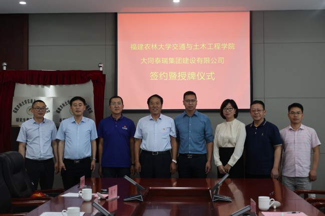 近日,交通与土木工程学院与大同泰瑞集团建设有限公司举行签约暨授牌仪式。交通与土木工程学院党委副书记焦廷伟,副院长盛叶,办公室主任叶宝春,土木工程系副主任黄志伟和大同泰瑞集团建设有限公司党总支书记秦志国,监事长张扩忠,董事张宁,技术总监杨玉栋,瑞城公司执行董事丰振武等共同出席本次签约暨授牌仪式。