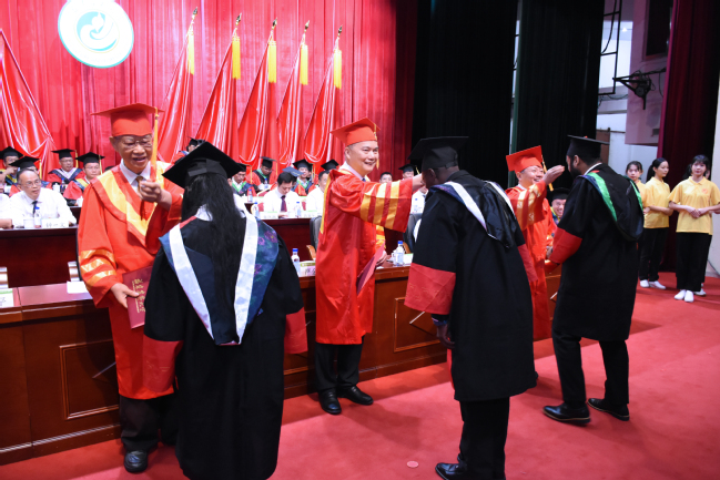 严金静代表学校向顺利完成学业、学有所成的全体毕业生表示热烈祝贺,向辛勤培育他们的老师致以衷心感谢。严金静指出,近年来,我国发展取得了巨大成就,充分展现了中国共产党领导和我国社会主义制度的显著优势,充分展现了中国人民和中华民族的伟大力量,充分展现了中华文明的深厚底蕴,极大增强了全党全国各族人民的自信心和自豪感、凝聚力和向心力,这都是同学们成长的宝贵财富,必将激励同学们在今后的人生道路上乘风破浪、阔步前行。