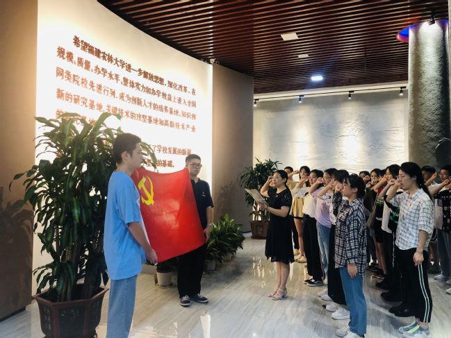 宣誓仪式之前,全体党员同志参观了校史馆,大家纷纷表示,结合党史学习重温学校发展历史,一代又一代的农林大人接续奋斗的精神让人备受鼓舞,要以党史学习教育为契机,把入党誓词作为自己的终生追求,努力做到学史明理、学史增信、学史崇德、学史力行,鼓起迈进新征程奋进新时代的精气神,以良好的精神风貌和优异成绩迎接建党一百周年。