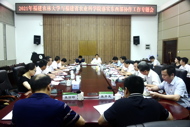6月29日下午,我校和福建省农业科学院在明德楼武夷厅召开专题会议,根据《2021年闽宁协作重点工作任务分工方案》,研究落实校院联合承担的工作任务。会议由校长兰思仁主持,副校长郑宝东、省农科院副院长汤浩出席。