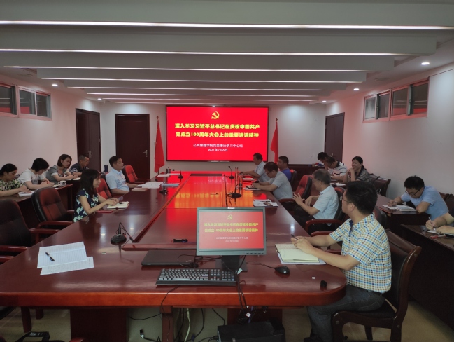 7月6日上午,公共管理学院党委理论学习中心组(扩大)专题学习习近平总书记在庆祝中国共产党成立100周年大会上的重要讲话精神。院党委书记曾起郁主持会议,学院党委委员、党支部书记、科级干部、系主任、平台中心负责人、辅导员参加学习。
