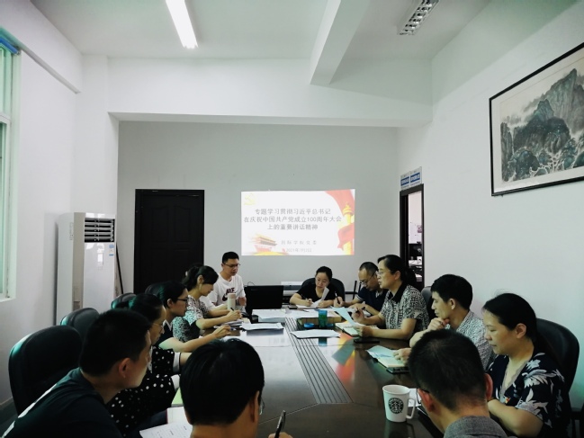 7月2日,国际学院党委在301会议室召开理论中心组(扩大)会议,开展习近平总书记在庆祝中国共产党成立100周年大会上重要讲话精神的专题学习研讨,理论中心组成员、党支部书记、辅导员参加学习,院党委书记张华英主持会议。