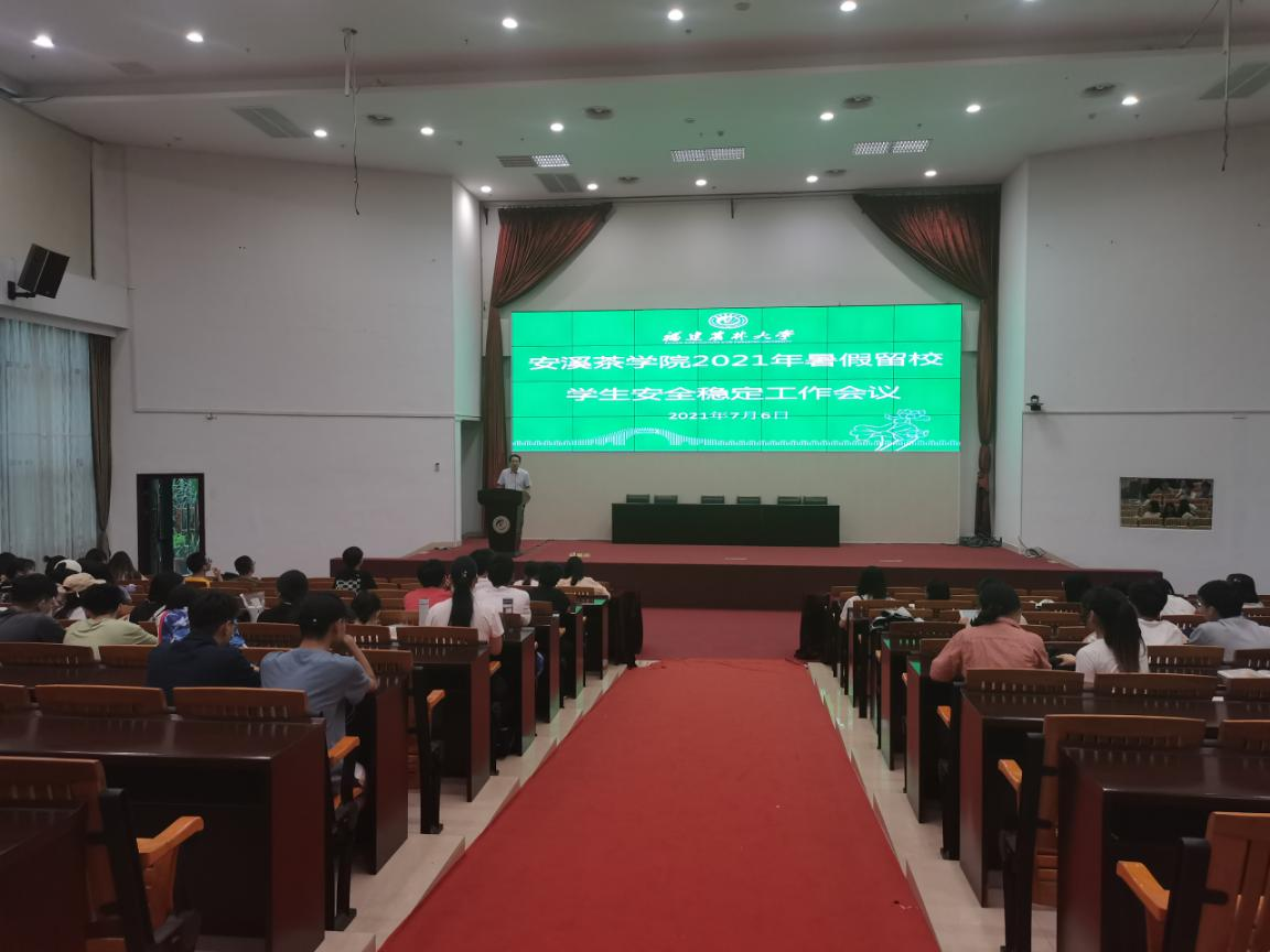 7月6日,安溪茶学院召开2021年暑假留校学生安全稳定工作会议。会议由安溪茶学院党委副书记李治洲主持,全体政工干部、暑假留校学生参加本次会议。