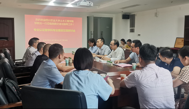 7月13日下午,四川农业大学土木工程学院院长邹祖银、院党委副书记赵中国、副院长刘国军等一行六人来交通与土木工程学院就专业认证和学科建设进行交流考察。学院党委书记黄文龙、院长廖飞宇、党委副书记焦廷伟、副院长盛叶及相关专业负责人参加了座谈。