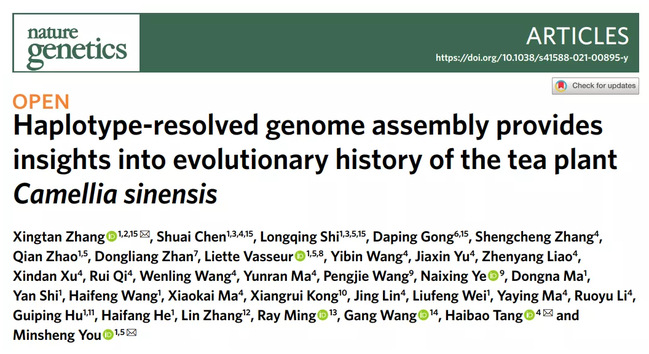 由我校尤民生教授和张兴坦研究员共同主持,联合国内外多家单位的科学家共同合作成功破解铁观音基因组和茶树演化史,研究成果于2021年7月15日发表在国际顶级期刊《自然遗传学》(Nature Genetics)上。研究人员利用独立开发的新算法攻克高杂合、高重复铁观音基因组组装难题,并在此基础上阐述了等位基因不平衡、茶树群体演化和驯化等相关科学问题。