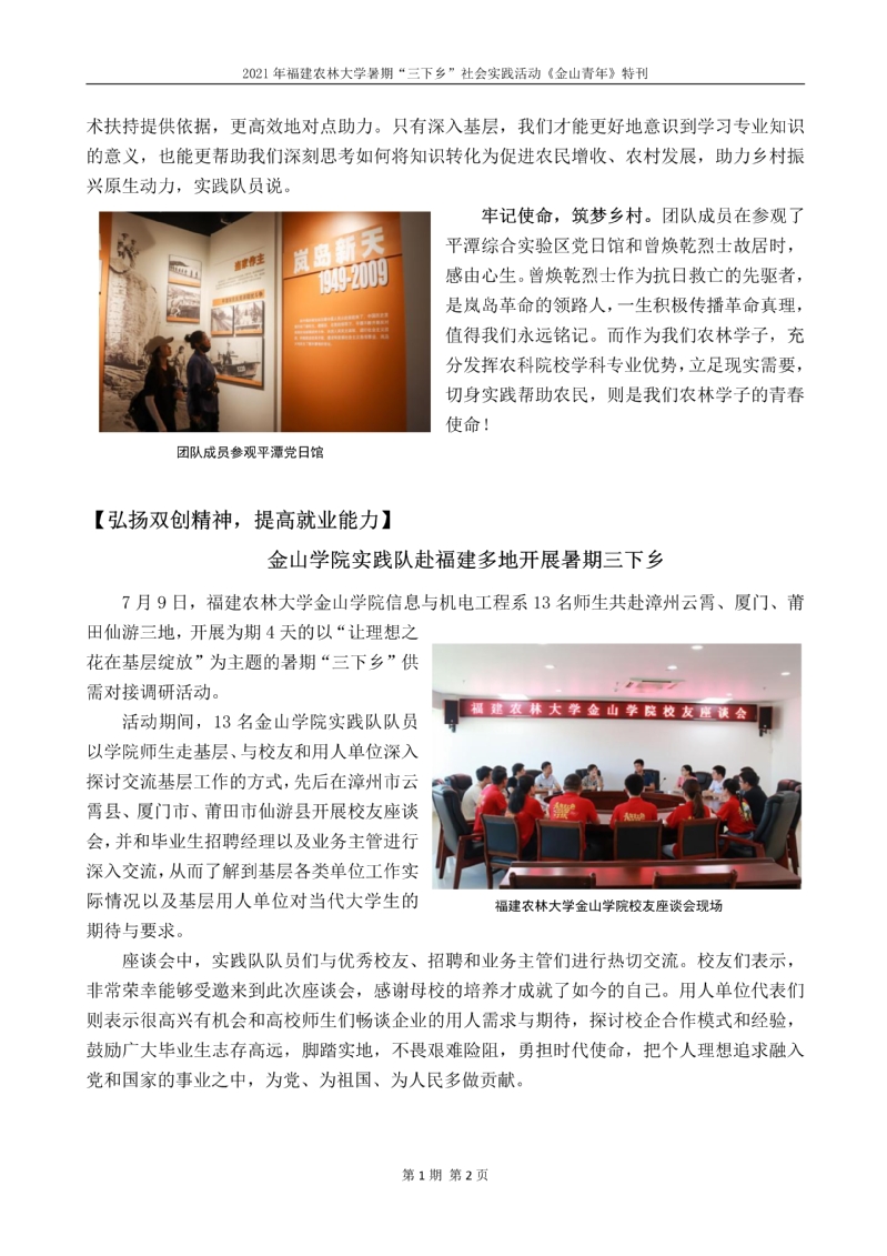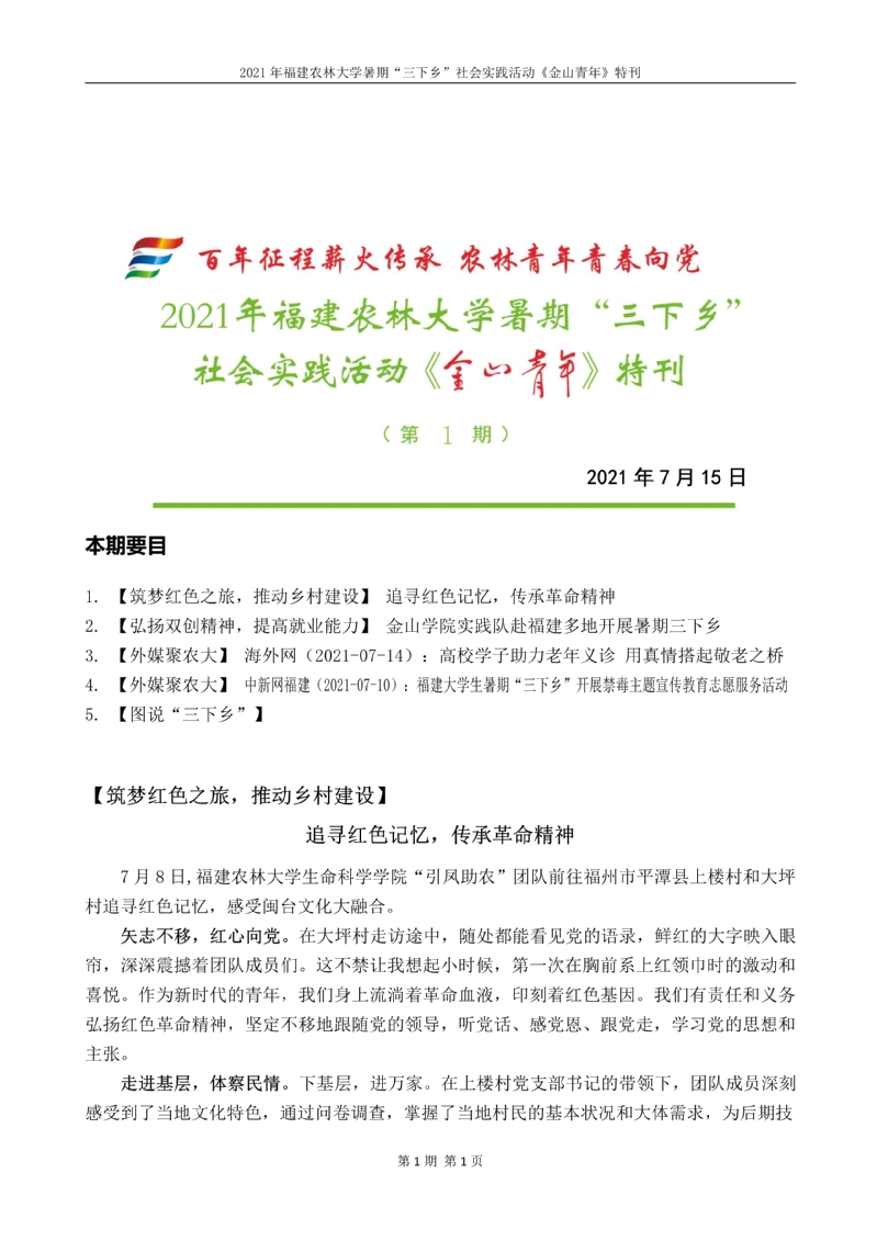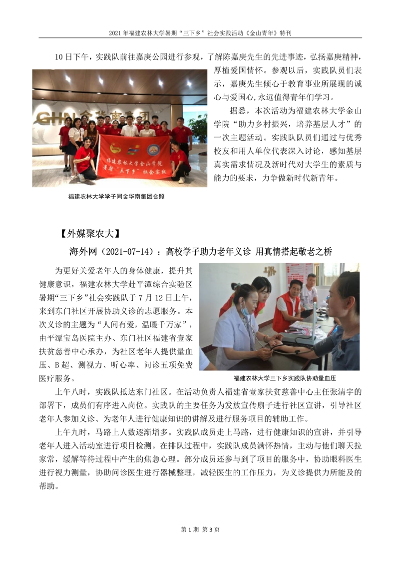 2021年开云网页版暑期“三下乡”社会实践活动《金山青年》特刊第一期