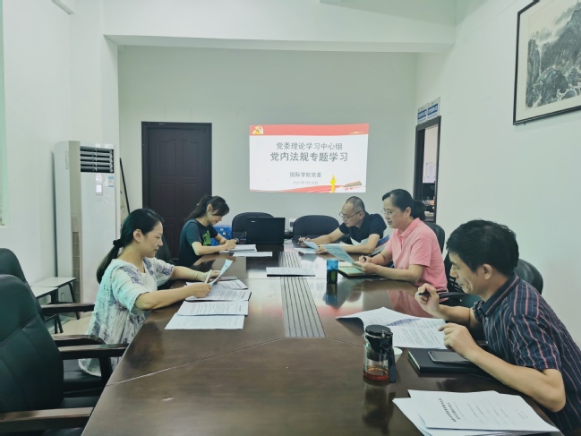 7月20日下午,国际学院党委理论学习中心组专题学习《中国共产党党内法规制定条例》《中国共产党党内法规和规范性文件备案审查规定》及《中国共产党党内法规执行责任制规定(试行)》等三部党内法规,理论中心组成员参加学习,院党委书记张华英主持会议。