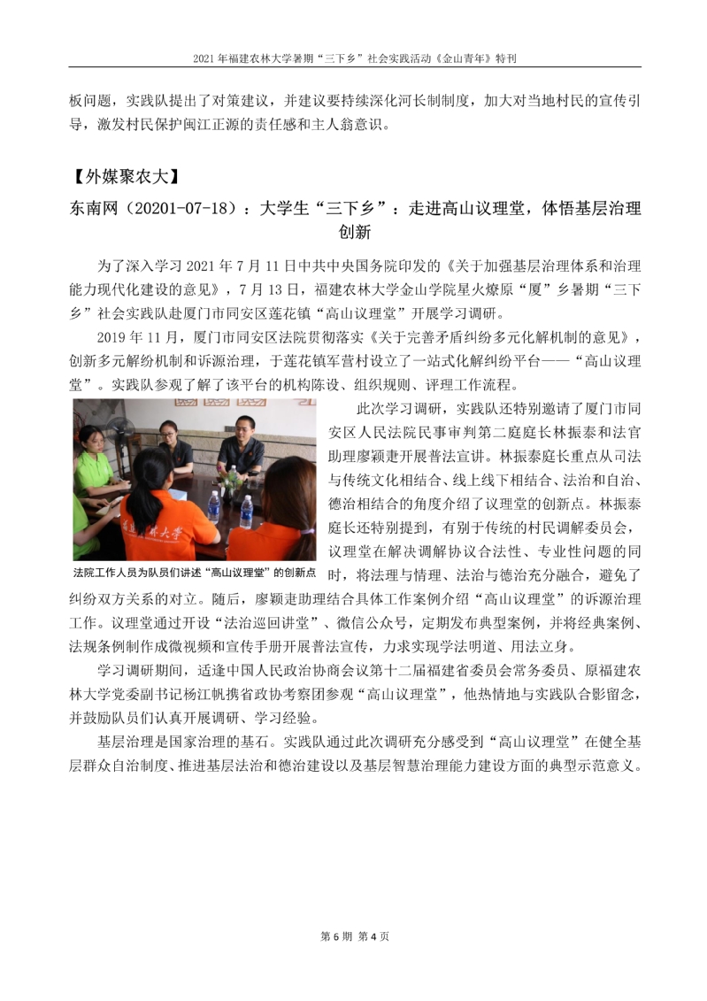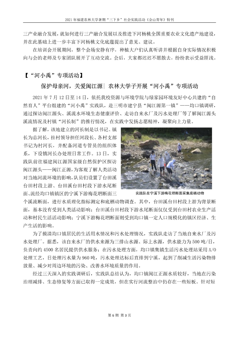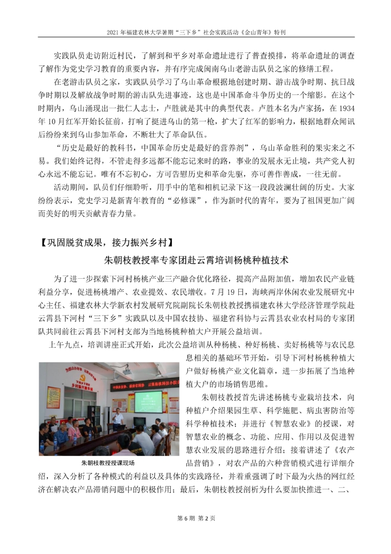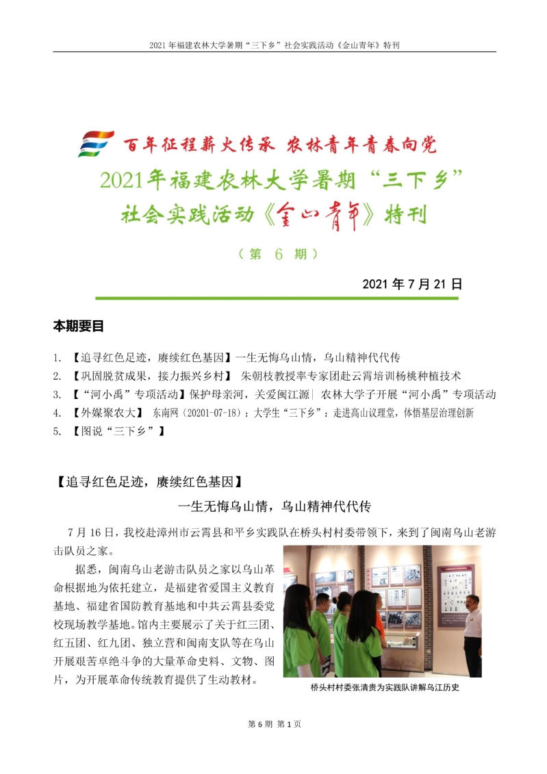 2021年开云网页版暑期“三下乡”社会实践活动《金山青年》特刊第六期