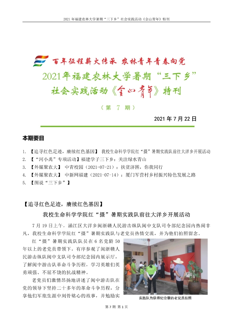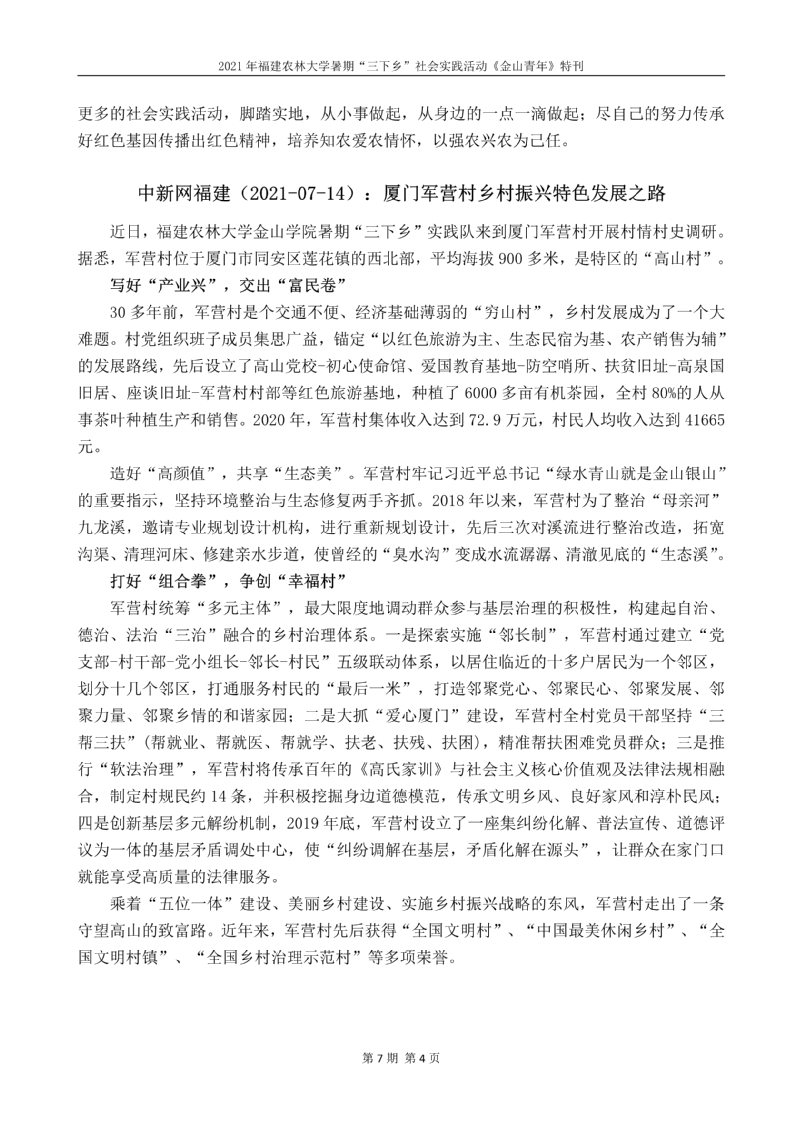 2021年开云网页版暑期“三下乡”社会实践活动《金山青年》特刊第七期