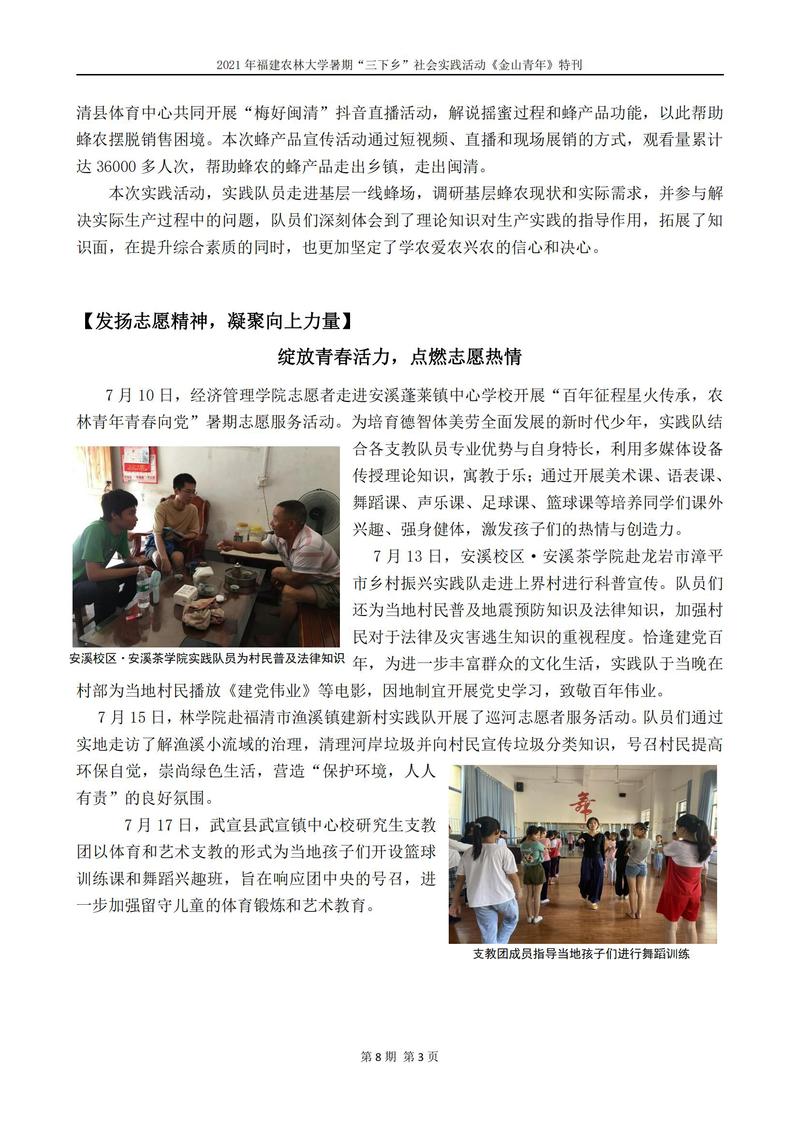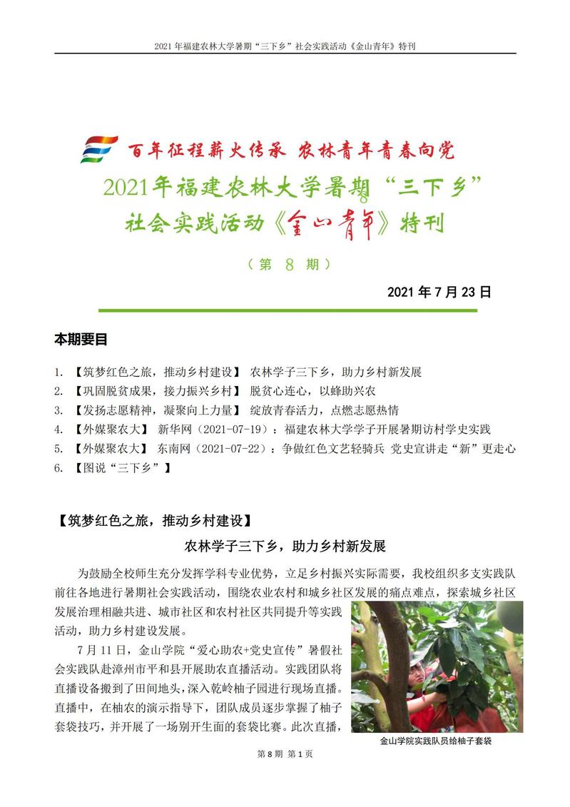 2021年开云网页版暑期“三下乡”社会实践活动《金山青年》特刊第八期