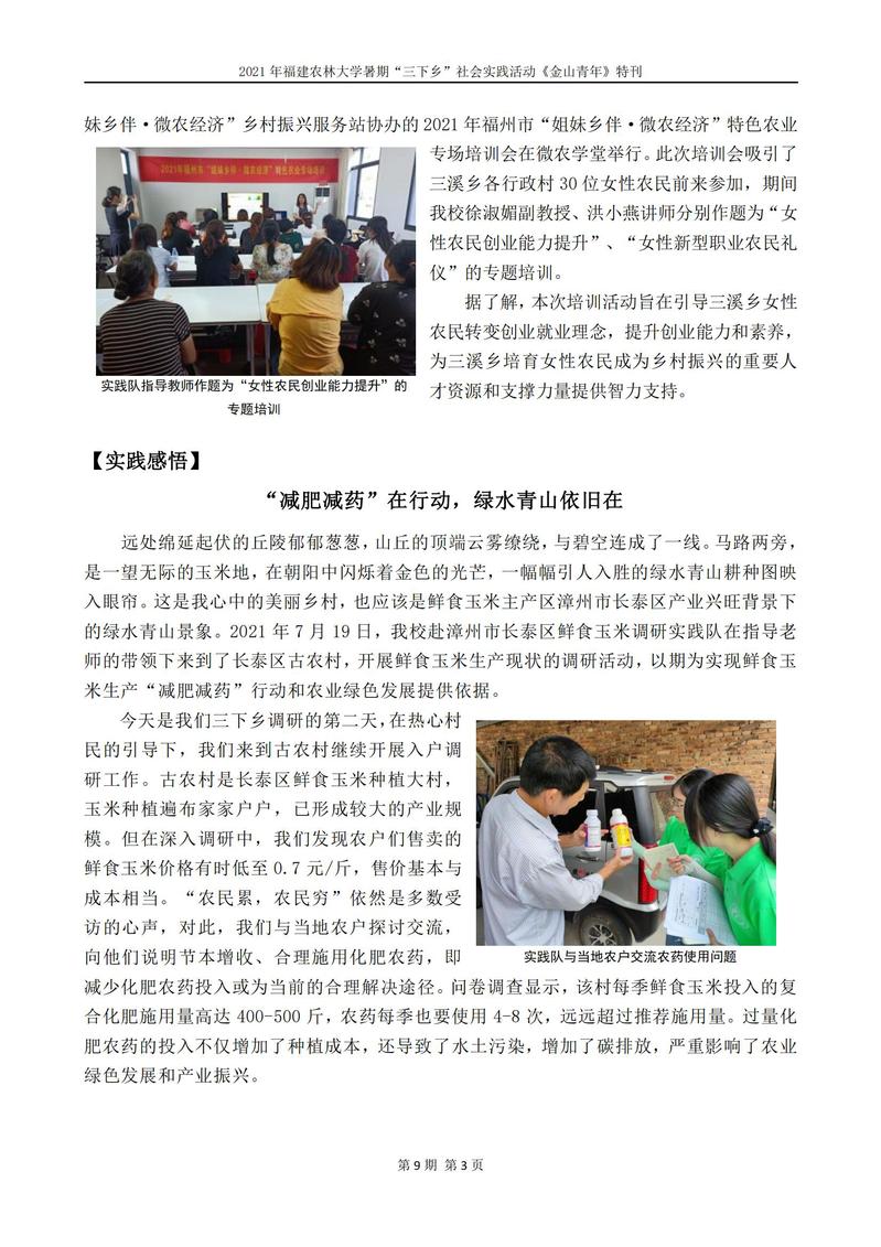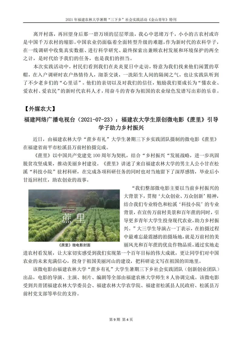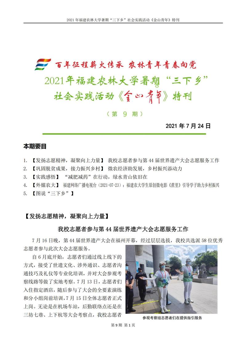 2021年开云网页版暑期“三下乡”社会实践活动《金山青年》特刊第九期