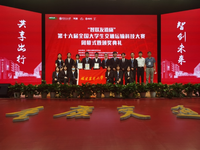 7月24日-25日,由教育部高等学校交通运输类专业教学指导委员会主办、重庆交通大学承办的“智联友道杯”第十六届全国大学生交通运输科技大赛在重庆交通大学落下帷幕。我校学生作品获二等奖、三等奖各1项。
