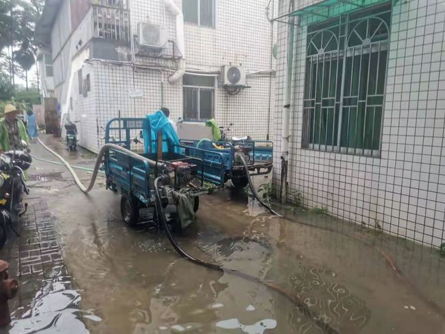 紧急出动设备,抽排田间实验室区域积水
