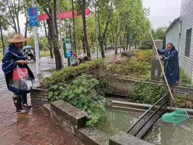 打捞水中杂物,确保排涝沟渠通畅